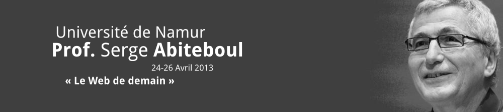 Du 24 au 26 avril 2013, la Faculté d’Informatique de l’Université de Namur a eu l’honneur d’accueillir, dans le cadre de la Chaire Francqui 2012-2013, le Professeur Serge Abiteboul, directeur de recherche à l’Institut national de recherche en informatique et automatique (INRIA).